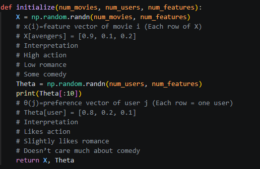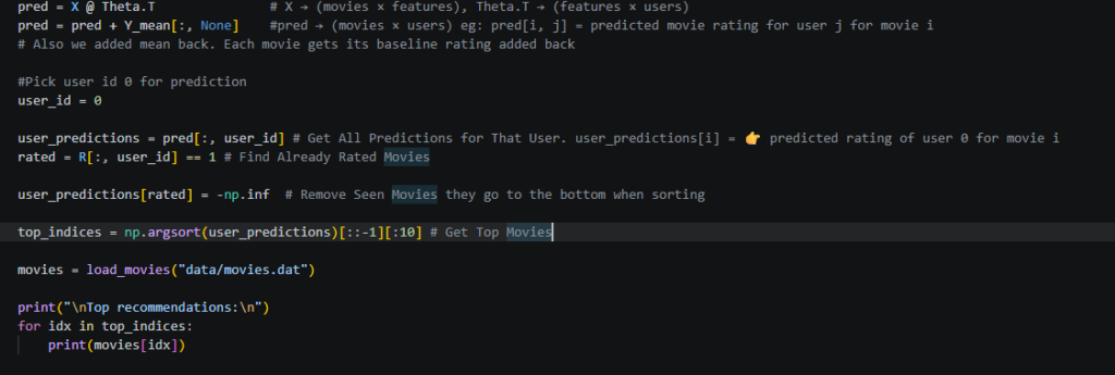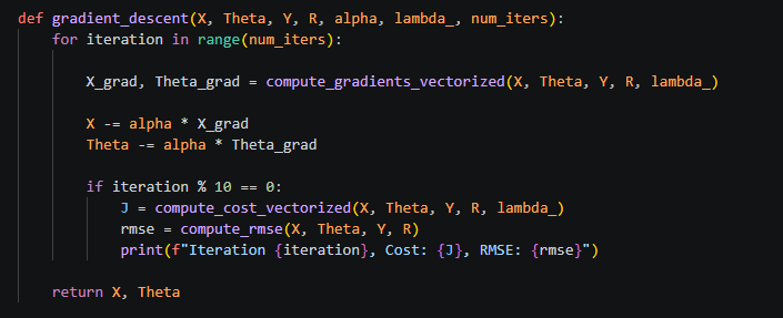 | Theta = Theta − alpha * Theta_grad | Update user preferences |